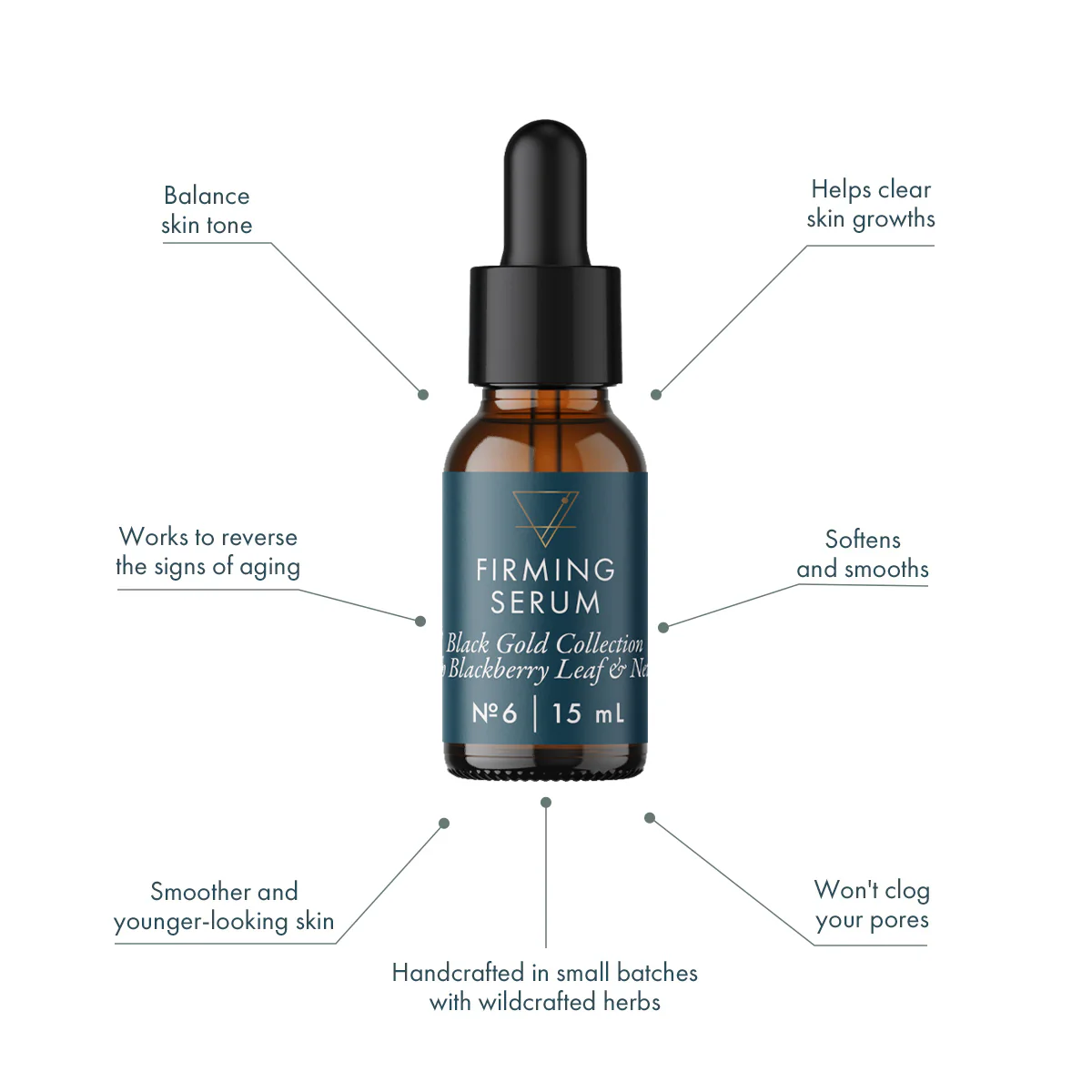 A hyper-potent liquid gold serum that targets fine lines and wrinkles with collagen and elastin boosting blackberry leaf infused in vitamin C and antioxidant rich sea buckthorn for intense rejuvenation, horsetail for smooth texture and vibrant tone, and an anti-stress blend of ashwagandha and nettles. Best for loss of firmness, and lackluster skin.